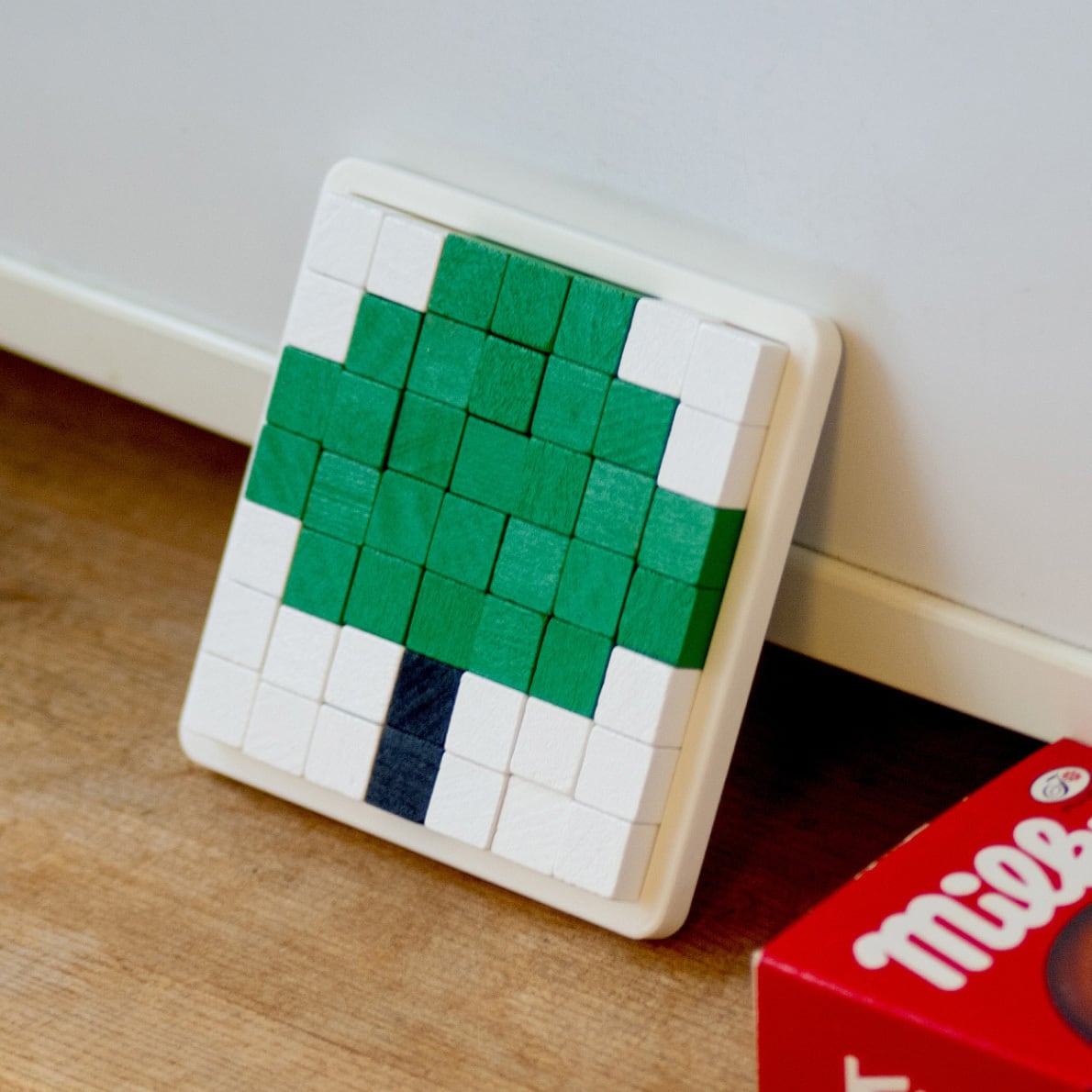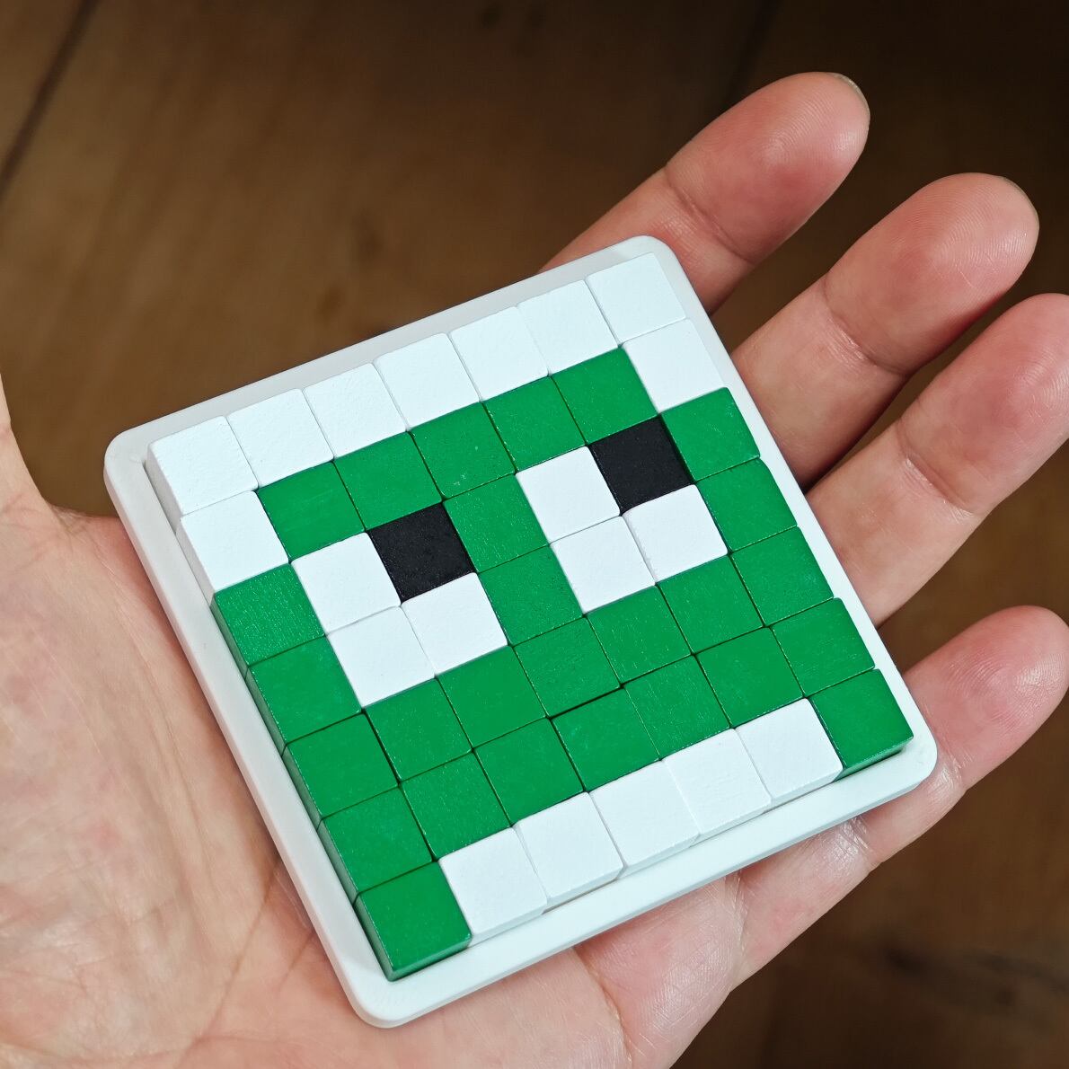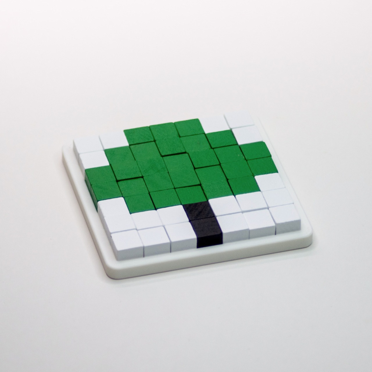 zomozo 7x7 積木ピクセル組み絵 緑|オリジナルデザイン 7X7 木製立方体パズル