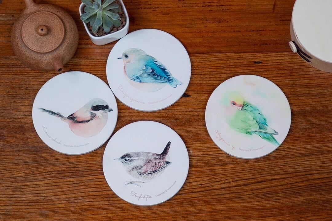 • MIIMOo米墨のアーティスト原创による水彩小鳥デザインの陶器コースターです。