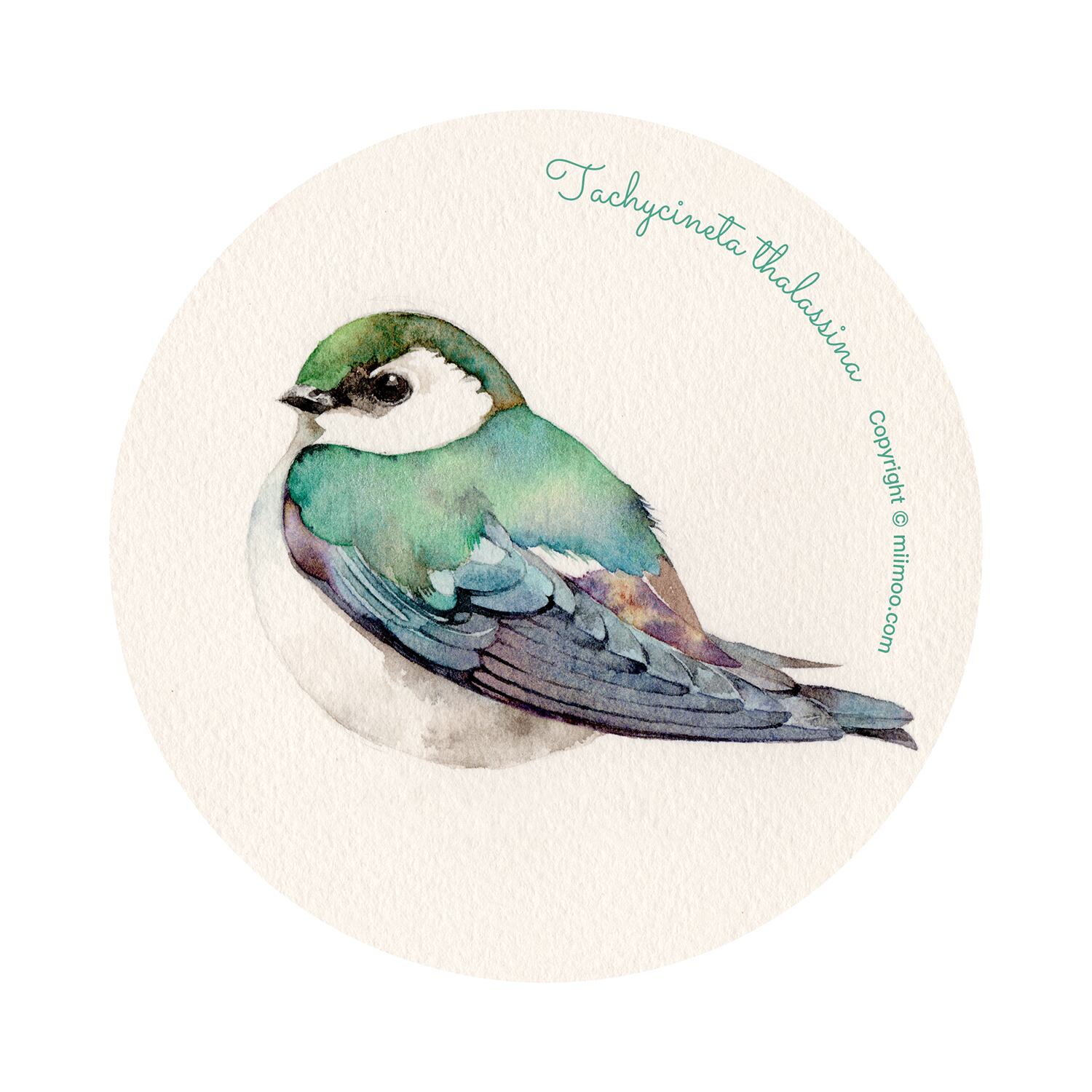 MIIMOo 米墨 水彩陶器コースター 紫緑樹燕 アーティスト原创 小鳥デザイン 吸水性陶器 ソフトコルク使用 直径103mm 厚さ7mm ティータイム用 デコレーション プレゼントに最適 MIIMOo米墨の正規アーティスト作品版权保護済み